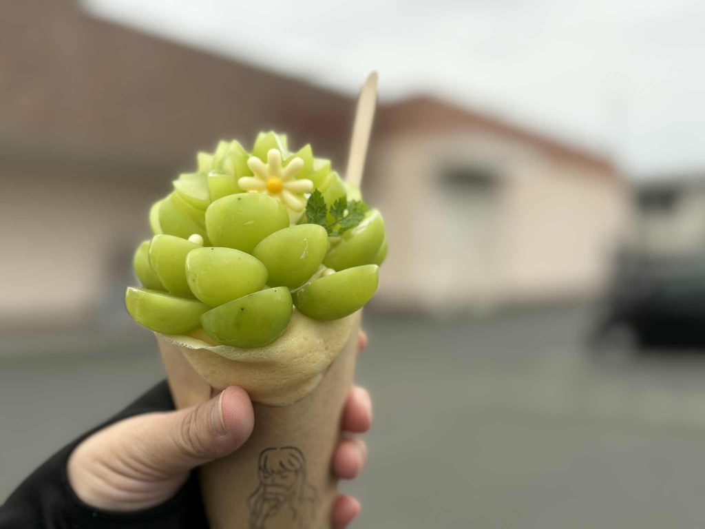 デザートは移動クレープ販売の「cuucafe」の期間限定シャインマスカットクレープ
