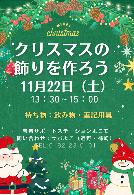 お知らせ11月のサポかふぇは『クリスマス会の飾りを作ろう』です🎄